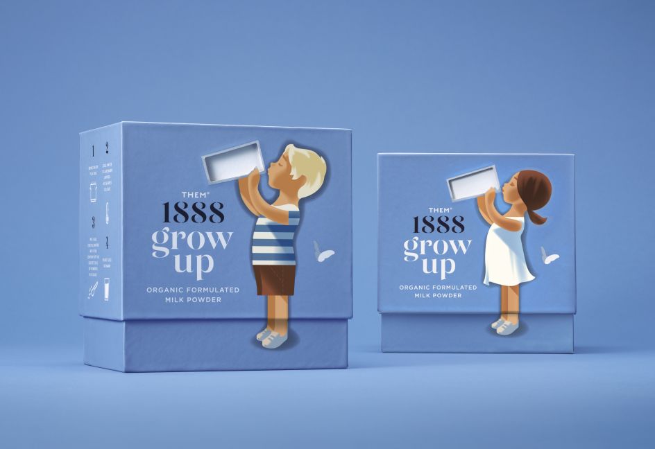 From soft, retro-inspired illustrations to packaging that demonstrates the product's effects, Them 1888's new milk powder brand is set to stand out among competitors.