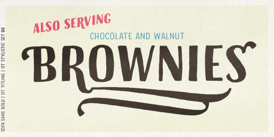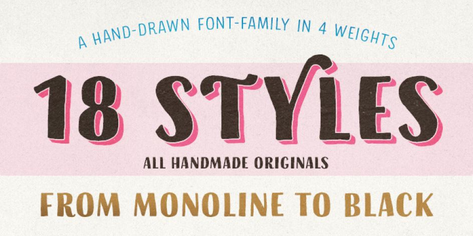 Sofa Sans comes in four weights, from a monolinear Thin to Black and 18 styles, including shadow-, 3D-, inline- and hatched-styles as well as five layer fonts. There are two optical sizes (Standard and Display), several OpenType features, including Swashes- and Titling-Alternates, and an extensive character set. It's currently available with an 80 per cent discount at MyFonts (ends April 14).