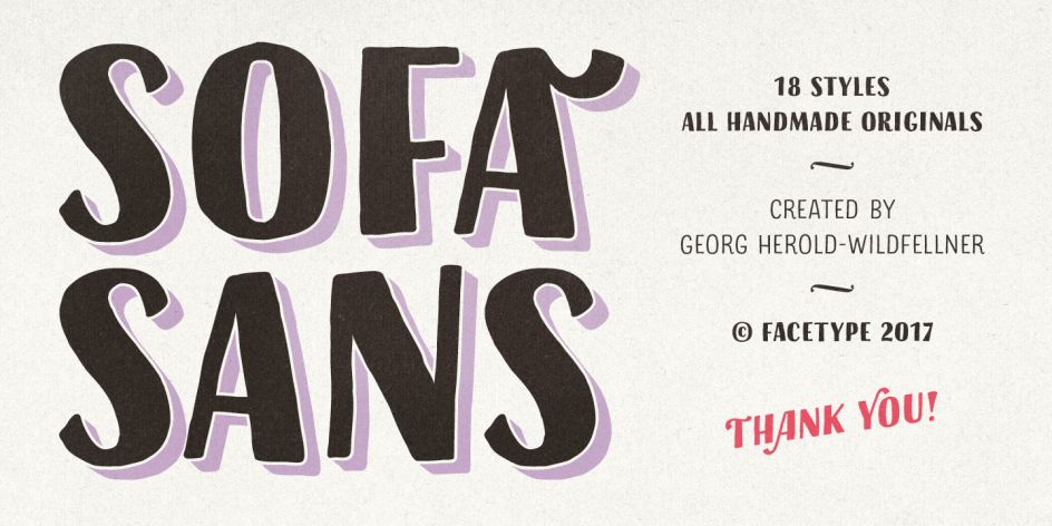 Created by Austrian type designer Georg Herold-Wildfellner, Sofa Sans is a new hand-drawn, all-caps, display-family font. With a friendly and eye-catching character, it could serve as a good choice for creating customised headings in editorial and cover designs.