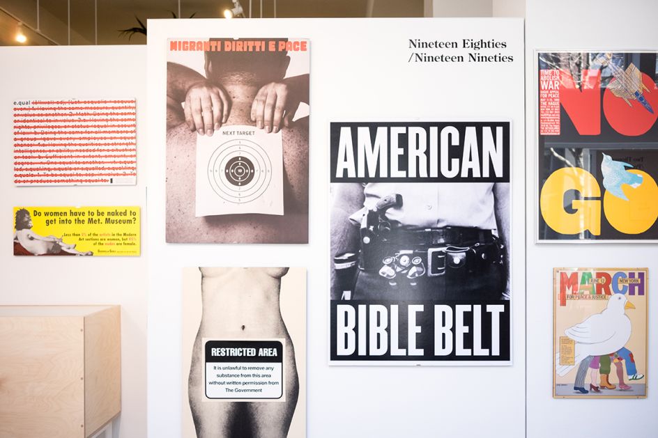 The show, which runs until early April, includes graphic works of protest from the 1960s until today created by over 50 prominent designers from around the world – including Paula Scher, Gran Fury, Barbara Kruger, Experimental Jetset, and many others.