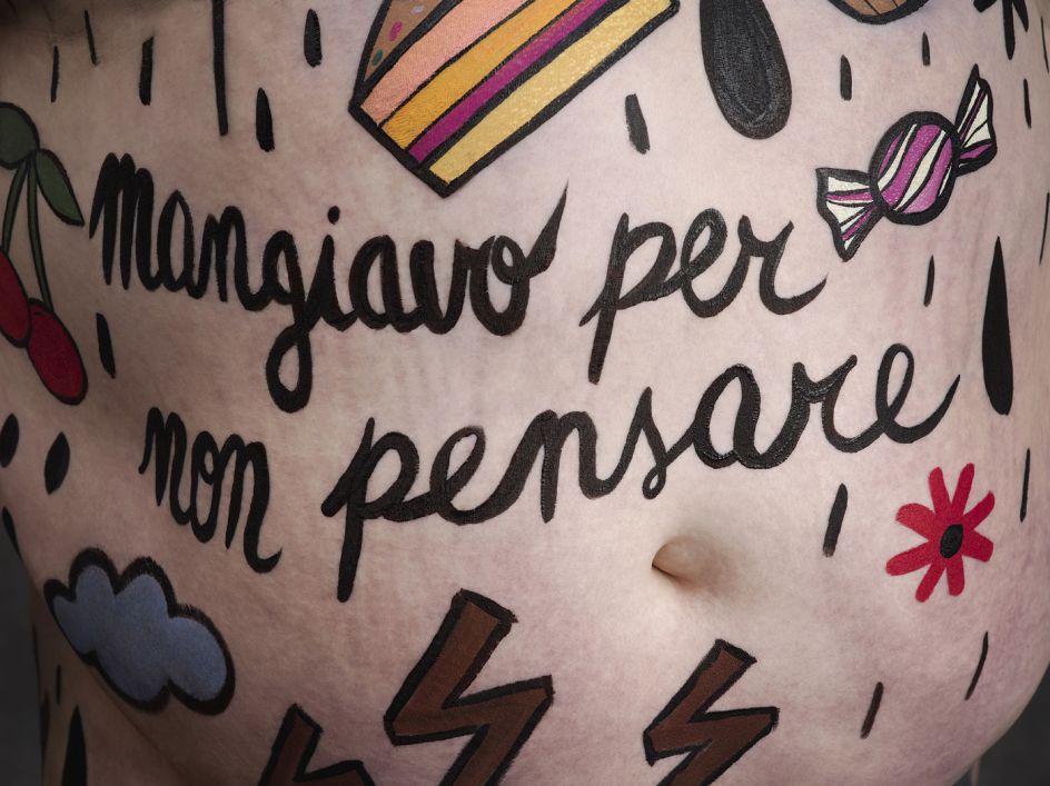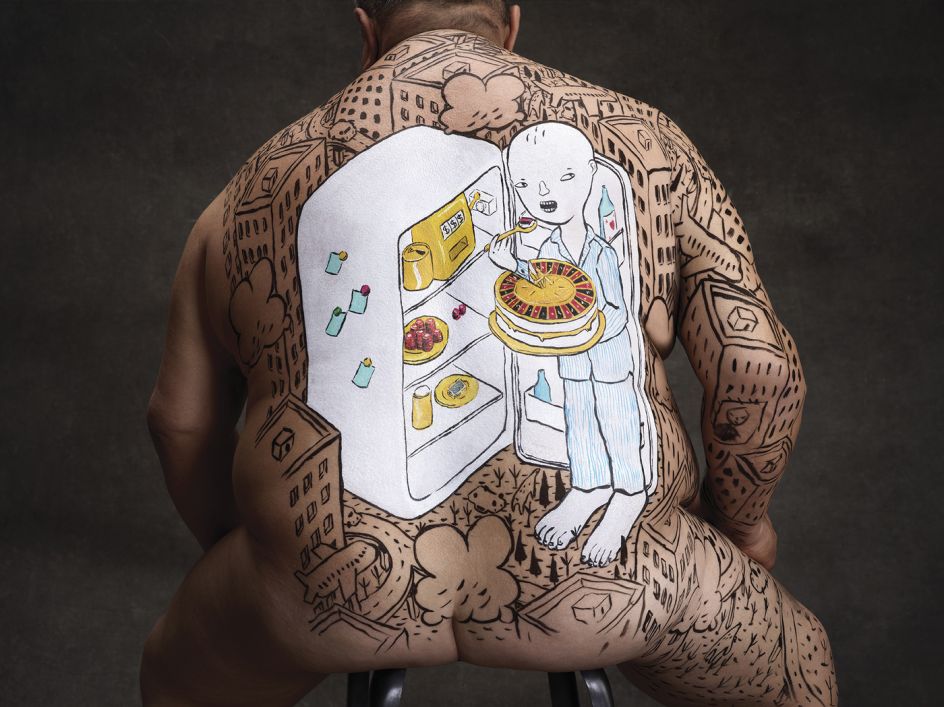 Illustrator Elisa Macellari, street artist Millo, tattoo artist Amanda Toy and calligrapher Nicolò Visioli have reinterpreted the real-life stories of four obese people, painting their words directly onto their bodies, which Winkler+Noah then photographed.
