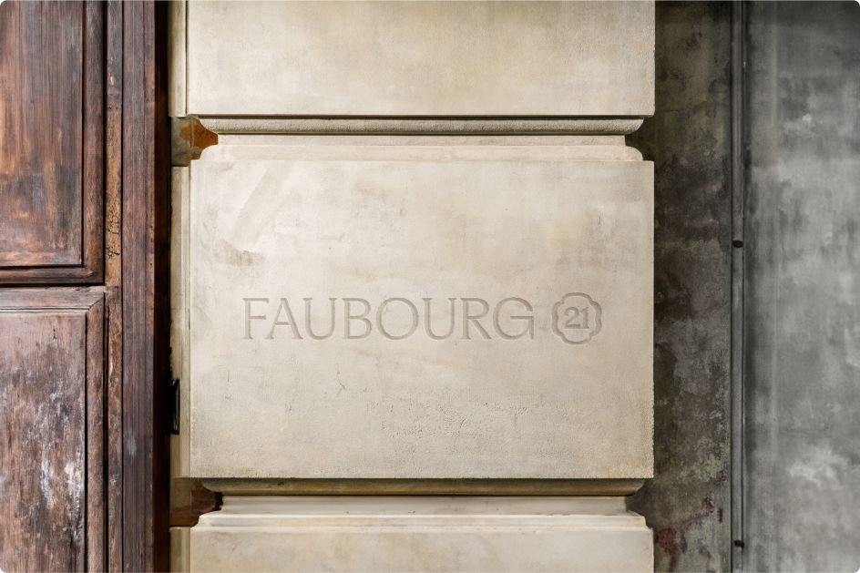 At the heart of the identity is the poetic concept of "ever-blooming discovery." It's a phrase that captures the experience of stepping inside Faubourg 21, from the unassuming street view to the layered, intimate spaces within.