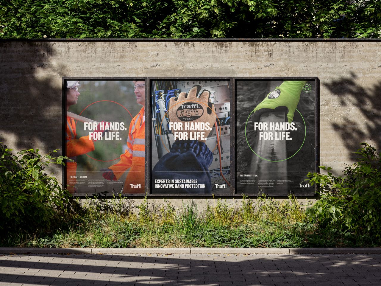 Since Traffi is the leader in hand protection, SUN wanted to build a messaging structure that drives that idea home and showed that Traffi has a deep understanding of the dangers people face in their roles. This is reflected across the new messaging and its typographic treatment, which is used alongside a heavier, more impactful font in ATC Railroad Gothic, chosen to bring gravitas to the visuals.
