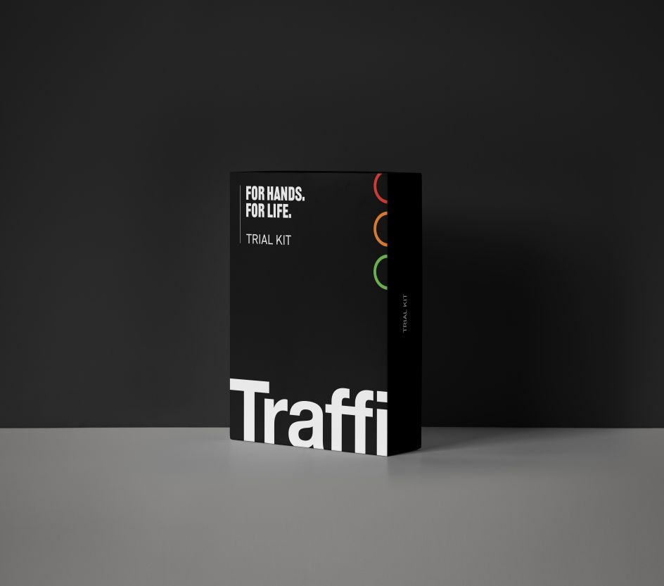 The company needed a new brand to prepare it for a future of global growth while showcasing its continued commitment to innovation in this space. SUN was recommended to them via a network of experienced marketing directors with whom the agency has worked for several years. SUN founder and creative director Jamie Kelly describes the brief as "a challenge, but a great one," explaining how their goal was to establish Traffi as "not just the leading hand protection specialist, but the specialist in understanding the daily lives of those they protect".