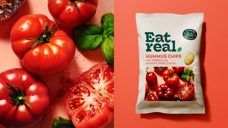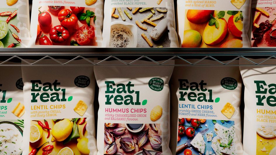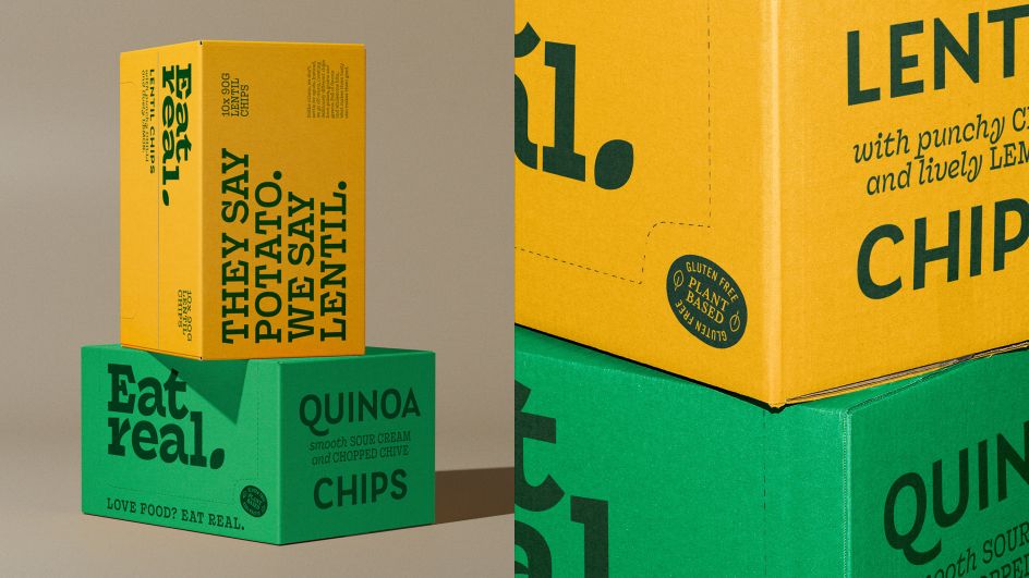 Importantly, they also solved a practical problem. Eat Real's range is complex: four different chip bases (hummus, quinoa, lentil, veggie), each with multiple flavour profiles. The previous design wasn't helping consumers navigate this.
