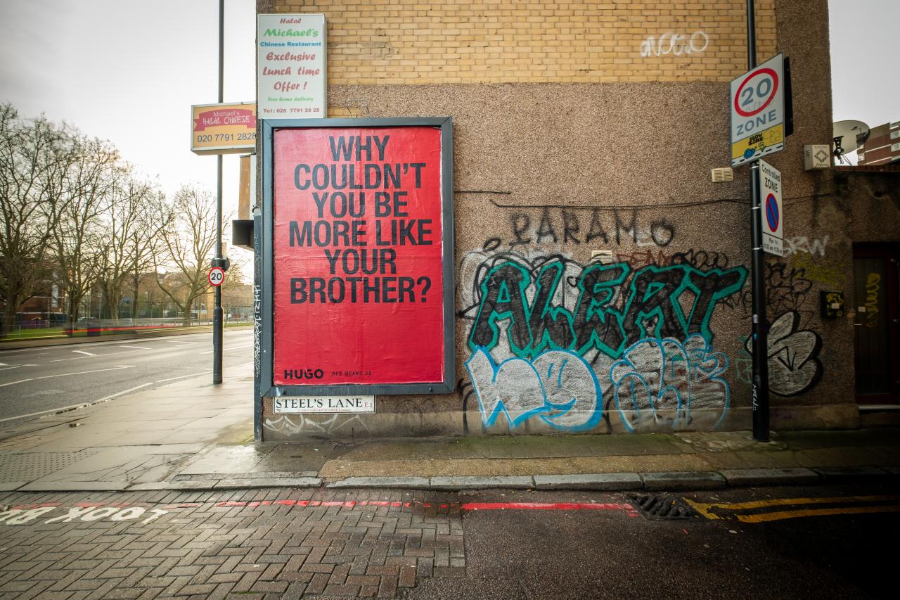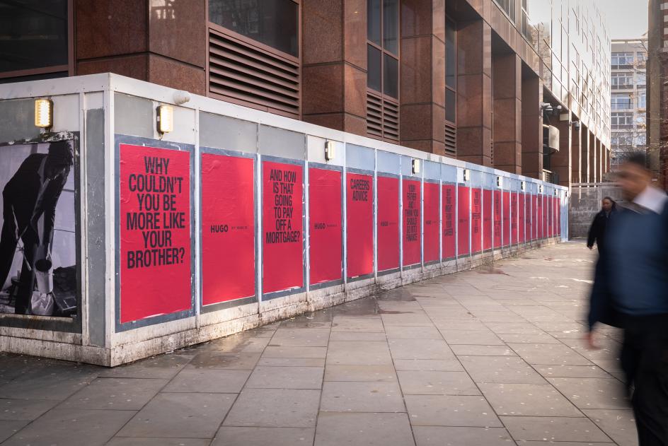 Your father and I think you should go into finance." "Why couldn't you be more like your brother?" "And how is that going to pay off a mortgage?" Such messages have been appearing on billboards across London, New York and Berlin, courtesy of fashion label HUGO. No product shot. No model in a crisp suit. Just a block of HUGO red, and the words your dad said at Christmas dinner that you've spent the last five years trying to prove wrong.