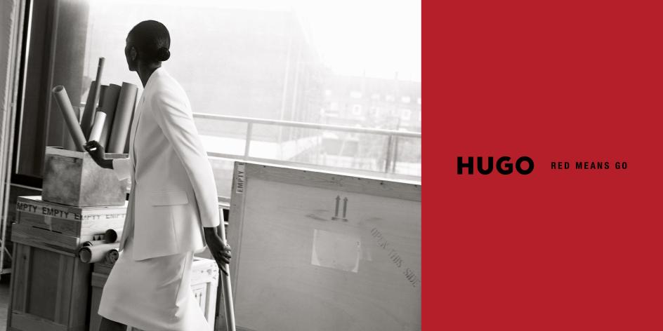 HUGO's red, already the brand's signature colour, earns a new meaning in this context. Red means stop. Except here, it means go. The platform title does a lot of work simply by inverting an assumption.