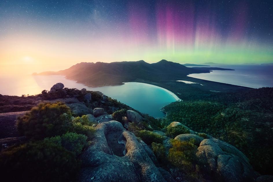 The pair spent two weeks camping across Tasmania, capturing its super-climate, dramatic light and most distinctive vistas. The resulting assets aren't stock-library generic; they're specific, atmospheric and visually unlike anything else in the category. That specificity is what gives the brand world its authority.