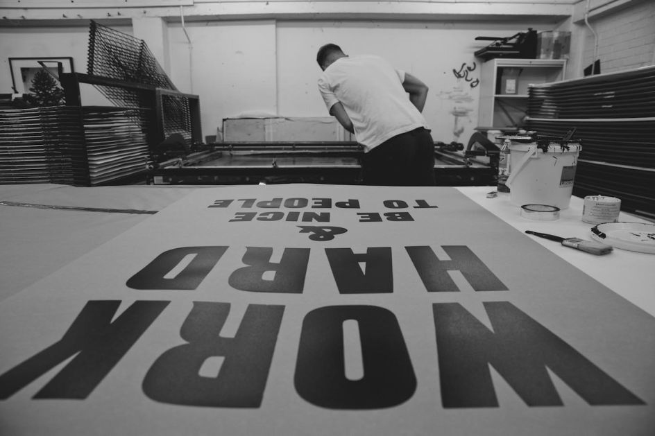 In an upcoming exhibition, Burrill takes his work to a larger scale for Shoreditch-based screenprint studio and gallery, Jealous. “I am delighted to work with Jealous on two new editions. These large-scale screen prints take the typographic simplicity of my letterpress work to a new and exciting place.