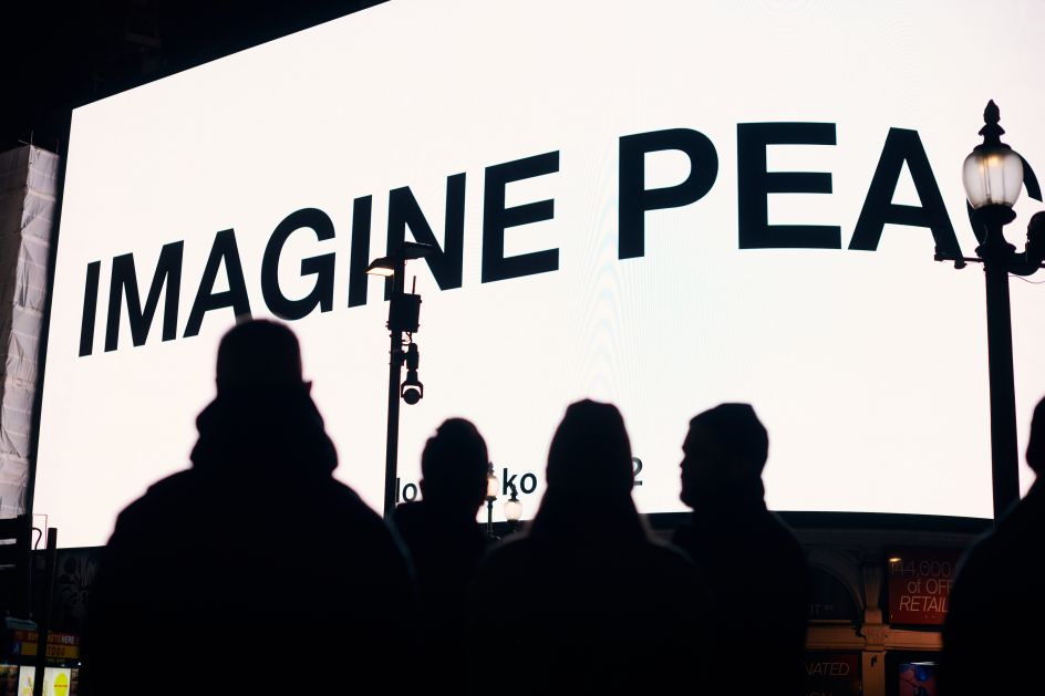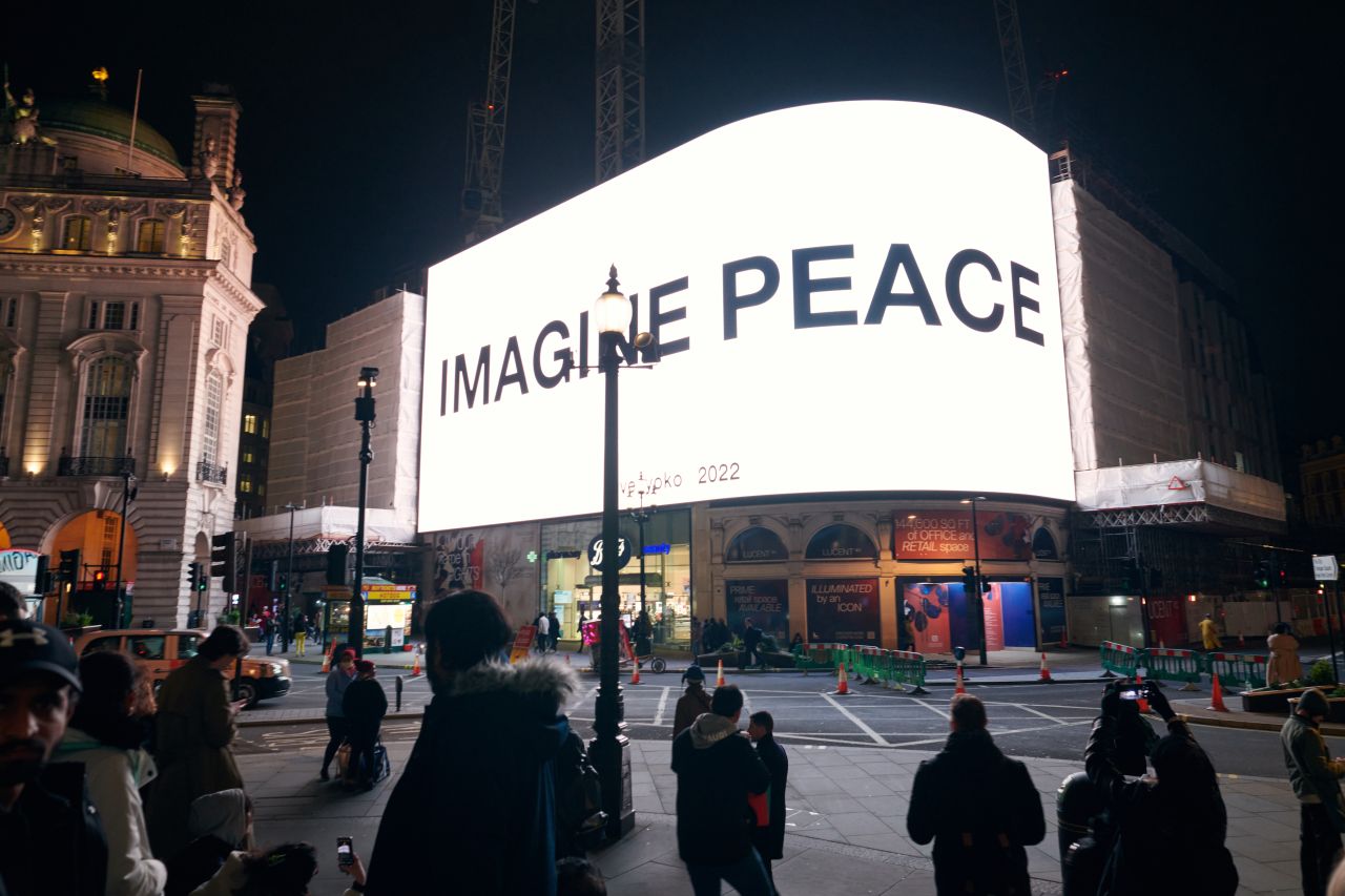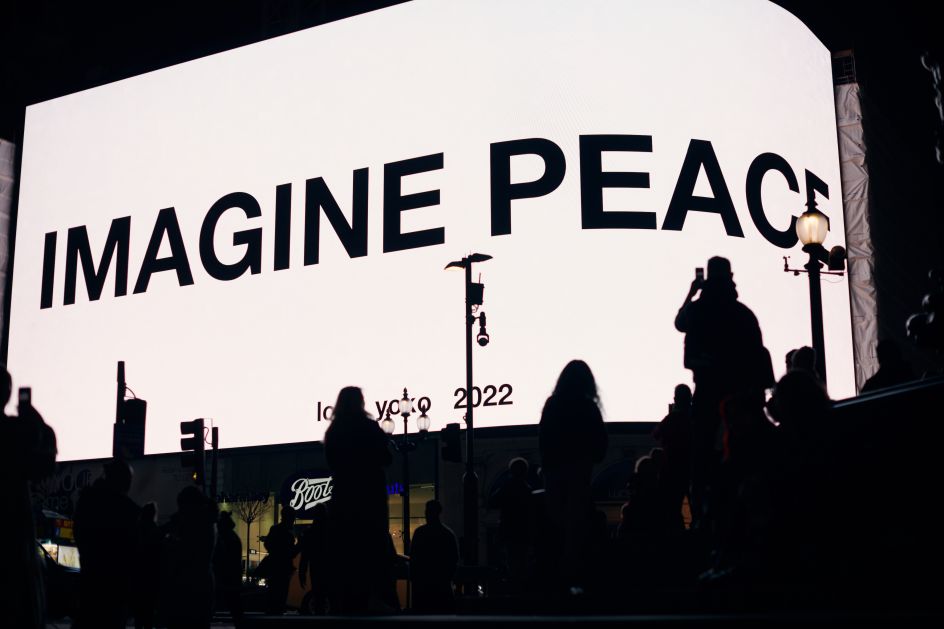 It's a message the world needs to heed more than ever in the current climate. Taking place on select screens every evening at 20:22 local time, towering screens that usually advertise products and events will give way to Yoko Ono's message of peace and global harmony.