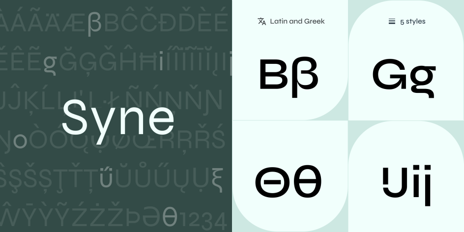 Conceptualised by Bonjour Monde and designed by Lucas Descroix with the help of Arman Mohtadji, Syne was originally designed in 2017 for the Parisian art centre Synesthésies. It represents an exploration of atypical associations of weights and styles and is a good choice for anyone open to making radical graphic design choices. A Greek script designed by George Triantafyllakos was added in 2022.