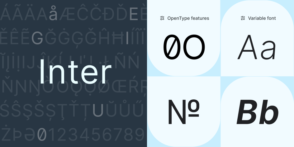 Led by Swedish software designer Rasmus Andersson, Inter is a variable font designed for computer screens, featuring a tall x-height to aid in the readability of mixed-case and lower-case text. It also includes several OpenType features, including tabular numbers, contextual alternates that adjust punctuation depending on the shape of surrounding glyphs, and a slashed zero for when you need to disambiguate zero from the letter O.