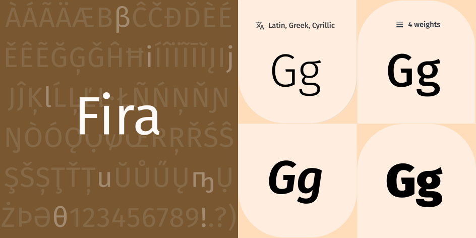 Led by Berlin type foundry Carrois, Fira is designed to integrate with the character of Mozilla's FirefoxOS. More broadly, this typeface family aims to cover the legibility needs of a large range of handsets varying in screen quality and rendering. It comes in three widths, all accompanied by italic styles, and includes a Mono Spaced variant.