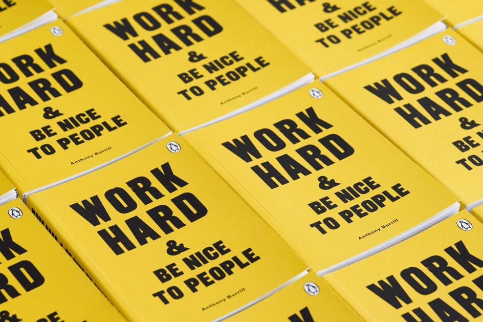 If there's one iconic poster adorning the walls of most design studios, it's Anthony Burrill's charming reminder to 'work hard and be nice to people', a piece of wisdom he once overheard in a queue at his local supermarket. And today, the graphic artist uses that phrase again, as the title of his latest book.