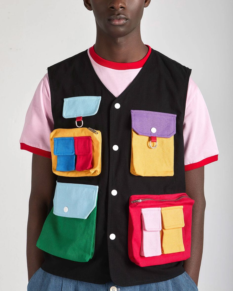 Your office, turned into fashion. David Méndez Alonso—multidisciplinary artist, fashion designer and self-declared Outsider from Galicia, Spain—has created a vest so wonderfully unhinged it deserves its own manifesto (which, appropriately, it has). Covered in colour-blocked pockets of every size and persuasion, it's equal parts utility and absurdist theatre.