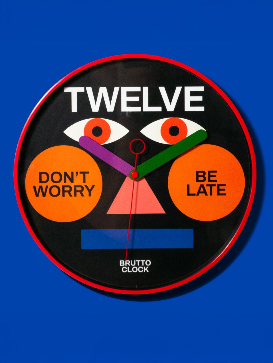 This clock was co-designed with Samuel Canay, graphic designer and fellow Brutto collaborator. Together, they've made something that doesn't just tell the time; it gently tells you to relax about it.