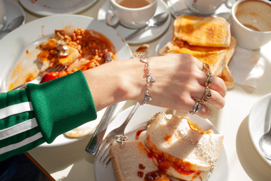 For the person who has always felt fine jewellery was missing a fried egg. Kitty Konsta grew up obsessed with miniatures and food in equal measure, trained as a jeweller, and eventually did the only logical thing: combined both into a handmade fine jewellery brand built around the Full English breakfast. The result? Sausage rings, a tomato ring set with emeralds, a beans ring studded with carnelians... sounds like a punchline and wears like a treasure.