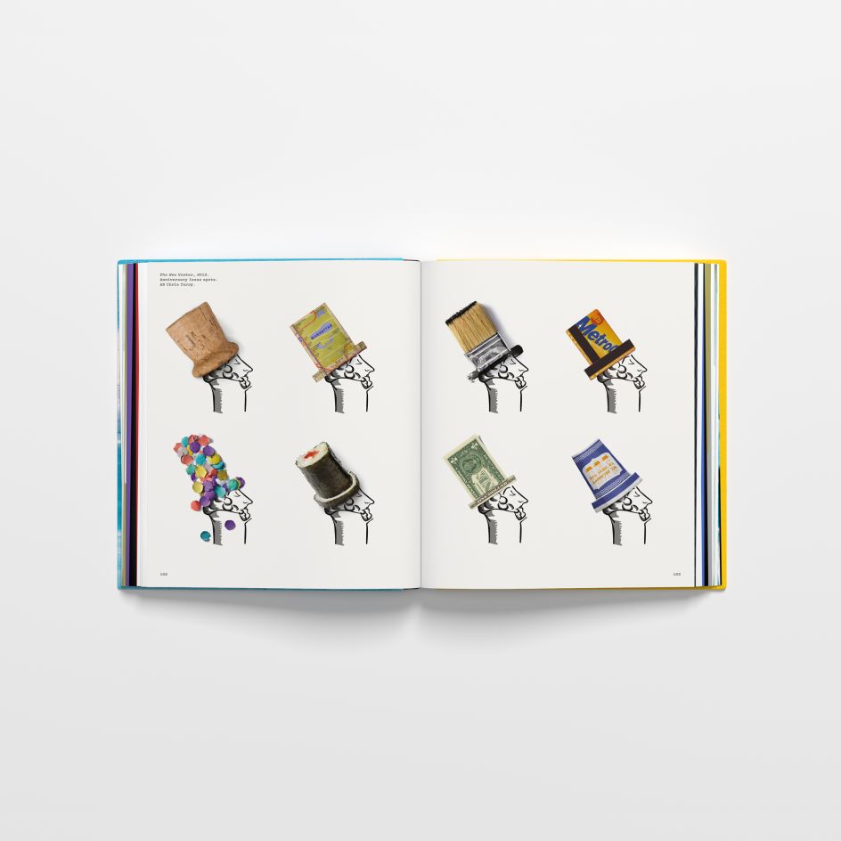 The book, which is available from Counter Print, comes with a free concertina-folded sticker sheet featuring many of the artist's best-known designs.