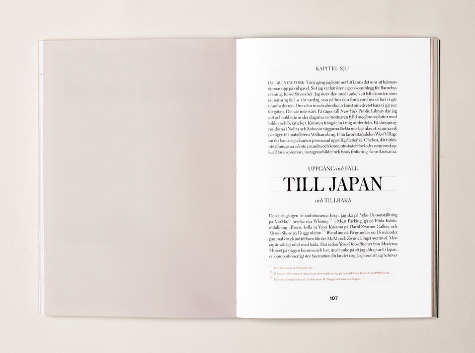 For the book's editorial design and cover, Modig approached Stockholm creative agency Snask to come up with the creative. They remarked: "When designing the book, we wanted to keep the aesthetics of an art book, but by adding an editorial touch to the design, we have tried to make it more accessible to a wider audience."
