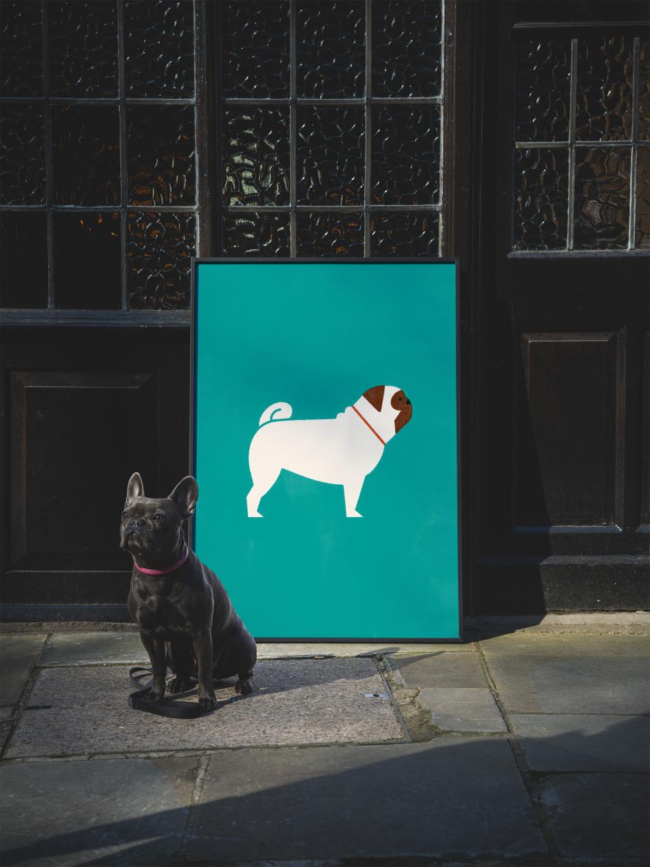 There's something quietly irresistible about Molly McCammon's artwork. Rendered in her signature limited palette with that characteristic grain and worn-in texture, the print channels the warmth of a beloved mid-century picture book. The subject is a charming pug turned into bold, simplified forms that feel both nostalgic and contemporary. It's a print that will make you smile every time you see it.