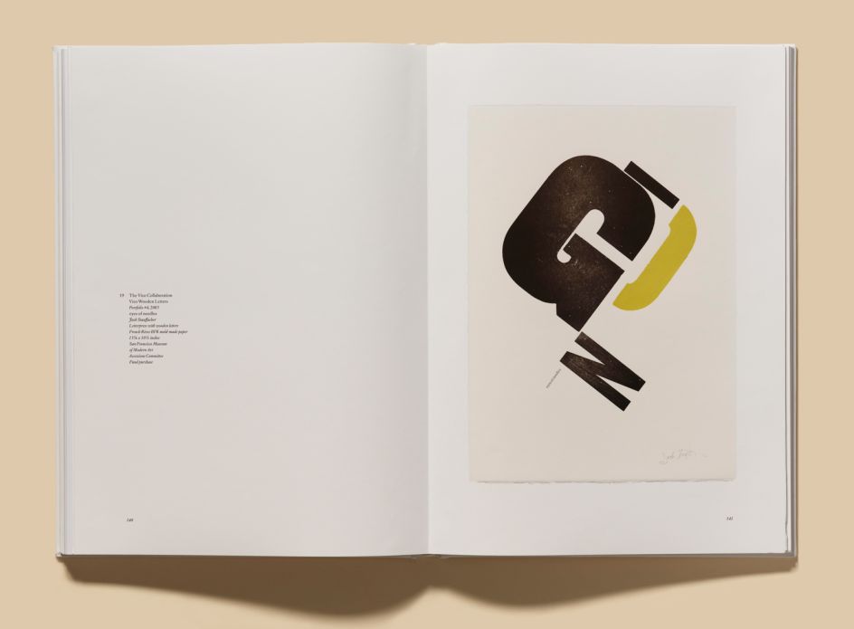 The book is anchored with an insightful essay by author and designer Chuck Byrne (former contributing editor for PRINT magazine and a long-time friend of Stauffacher), and includes contributions from names in type like Chuck Bigelow, Matthew Carter, and Jim Faris. Plus experts from the modern art world such as Jennifer Dunlop Fletcher, SFMOMA curator, and Staci Steinberger, LACMA associate curator; and a host of his closest friends and collaborators, including photographer Dennis Letbetter.