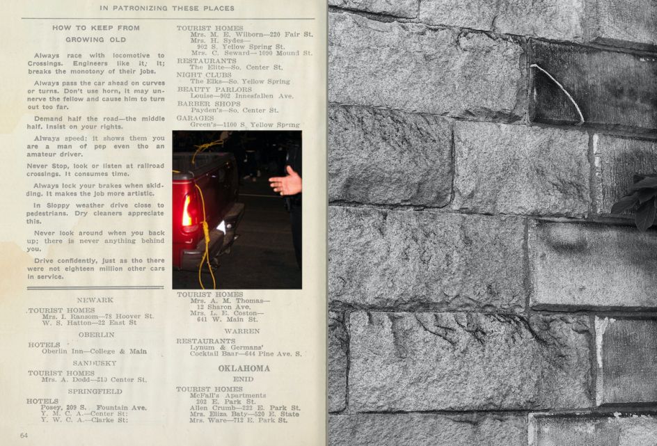 Willett's A Parallel Road references the historical Negro Motorist Green Book, an annual guidebook for African-American road-trippers published by African-American New York City mailman Victor Hugo Green from 1936 to 1966. A Parallel Road's cover design, with its simple holding device and typographic approach, imitates the green book. Simultaneously, the overall aim of Willett's project continues the idea of presenting the proposition that journeys and roads are not the same for everyone.
