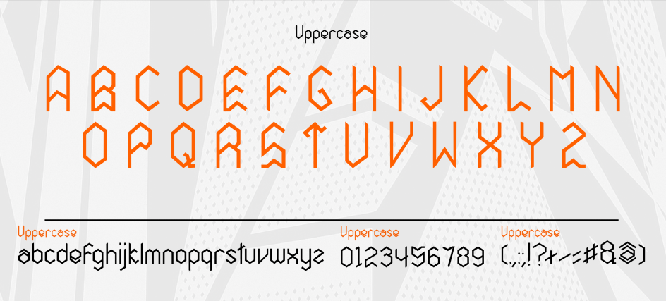 The result is a display typeface that carries its conceptual origins visibly, without feeling like an exercise in graphic design theory. The modular construction imposes consistency across the character set, creating the kind of typographic rhythm that emerges naturally when a strict system is applied with discipline.