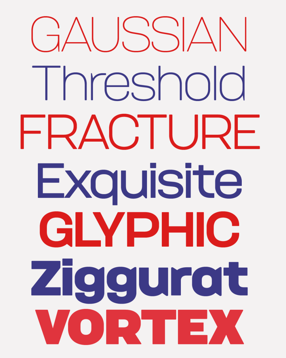 By arranging letters within a fixed horizontal framework, Aether creates a cohesive rhythm of stems and intervals: a rational, spatially unified typographic pattern whose historical origins make it feel entirely logical.