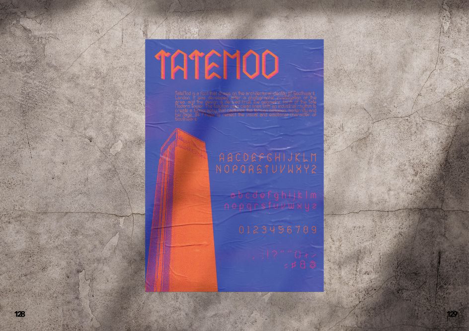 Tatemod closes this month's round-up with something that feels very site-specific. Jose Martinez's free display typeface was developed in direct response to the architectural identity of Southwark, and specifically to the Tate Modern, whose switched-off turbine hall and brick chimney stack have become one of the most recognisable silhouettes in London.