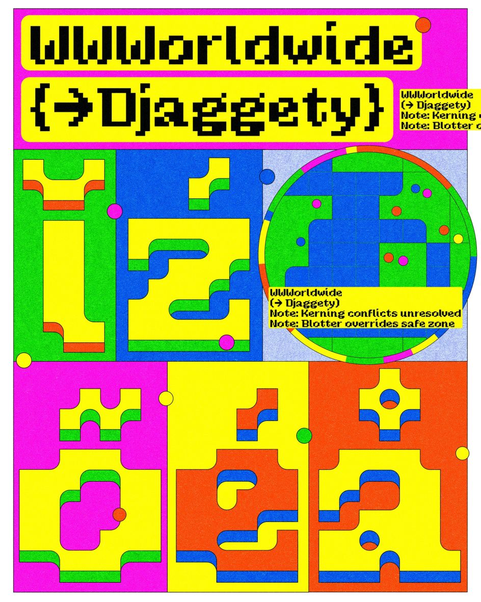 Djaggety began in a classroom. Alessia Mazzarella, who teaches type design to BA Graphic Design students at Typeland, uses an 8×8 grid exercise as a standard introduction to letterform construction. The constraint, she explains, strips away the paralysis of infinite choice and forces students to focus on what makes a character recognisable within a tightly defined system. During one iteration of the exercise, she found herself drawn into the process rather than simply demonstrating it.
