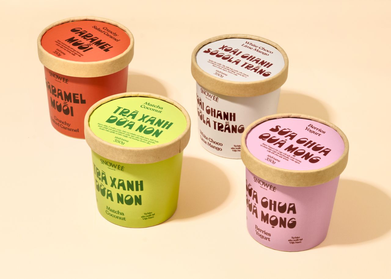 Snowee's character is derived from soft, elliptical geometry inspired by gelato scoops, combined with a calligraphic flow that adds authenticity and an organic feel. The heavy weight and rounded terminals create generous, friendly forms, whilst low-contrast strokes maintain structural balance and readability at large scales.