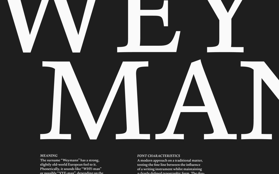 Expressive without extravagance, Weymann Serif performs without performance; engaging eye and page quietly, unmistakably. For books, journals, catalogues, essays, and editorial work, it offers the kind of reliability that becomes invisible precisely because it works so well.