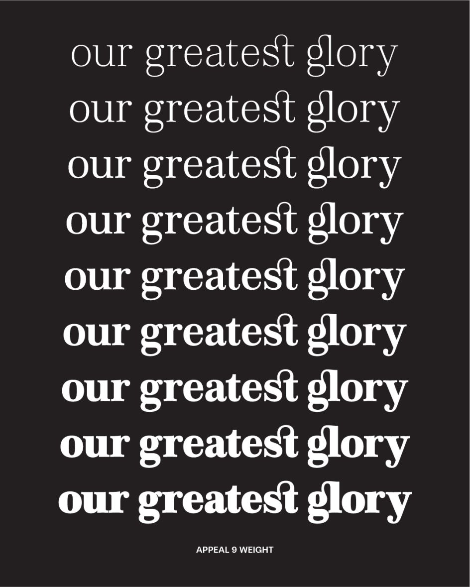 Practically speaking, We Appeal serves as a capable text serif suitable for contemporary use. It's a typeface that invites contemplation of typography's relationship to power, voice and representation. For designers and institutions working with themes of social justice, historical documentation or cultural preservation, We Appeal offers more than aesthetic choice; it provides typographic voice with genuine historical resonance and purpose.