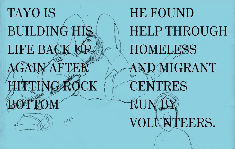 An anthology of stories and drawings created by people affected by homelessness, laying bare their own lives and experiences, this is the first time that a book like this has been published. The compilation of drawings, texts, visuals and poems is a revealing insight into this marginalised group, making what may be the world's first graphic novel created by people who are homeless.