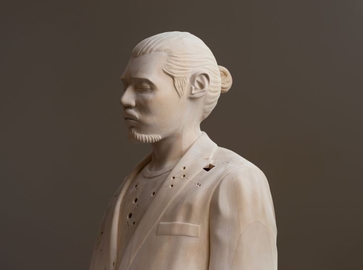 Wooden sculptures of twisted human forms by artist Paul Kaptein