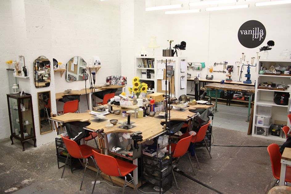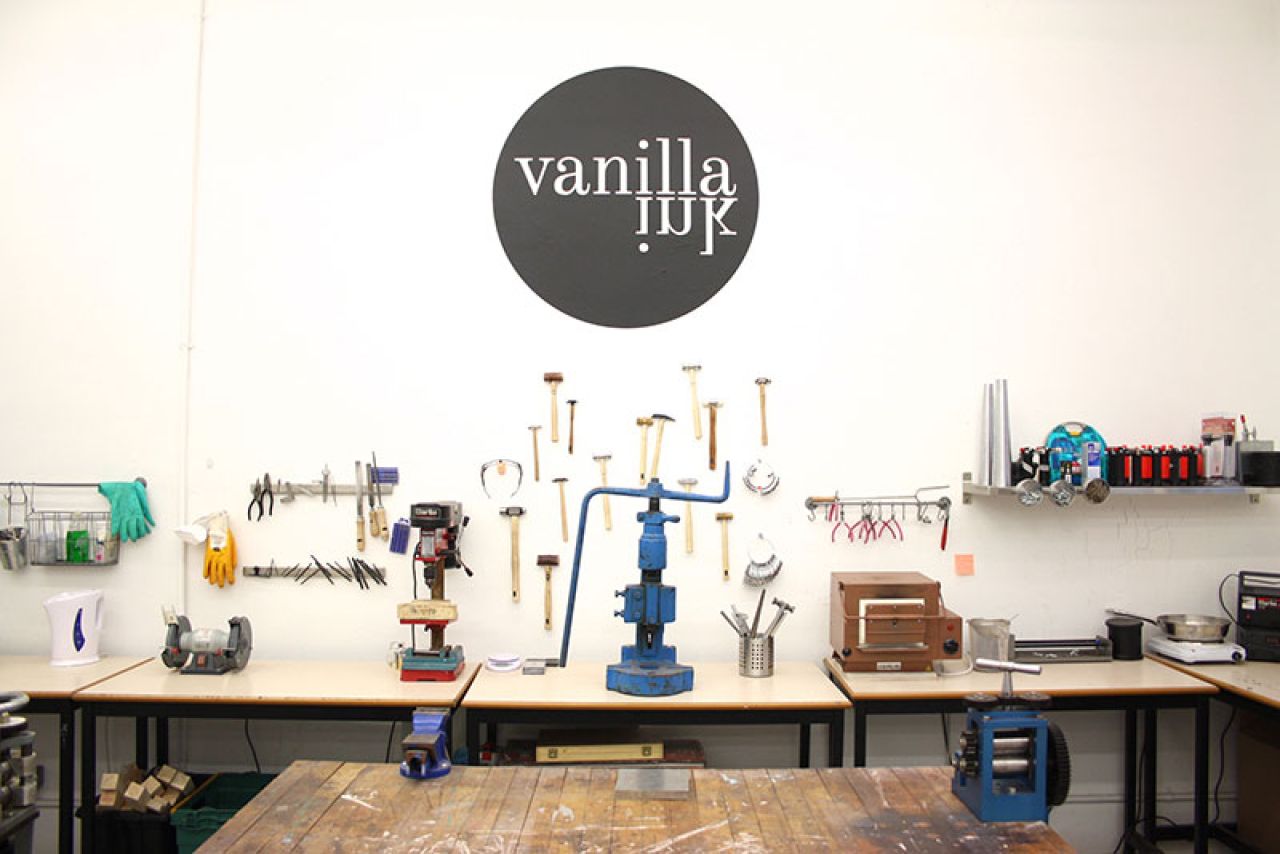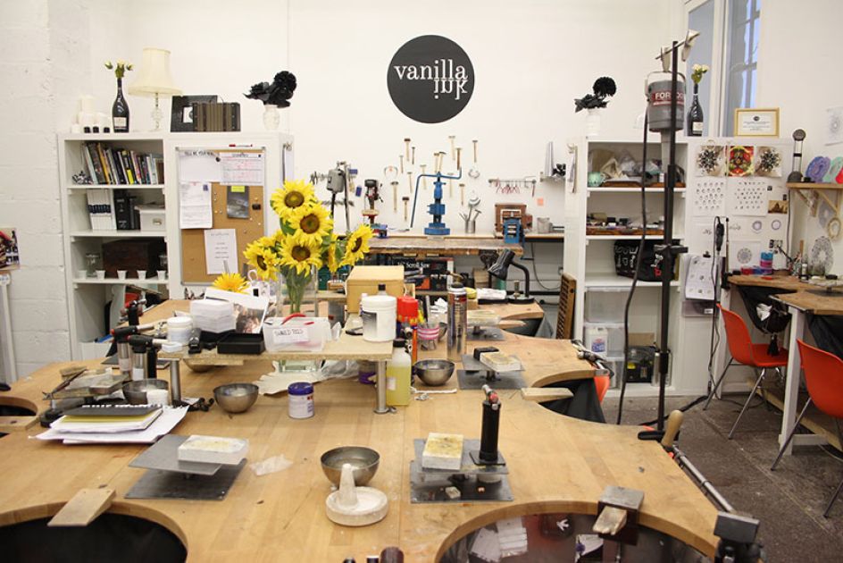 Today, I'm looking at the studio of Vanilla Ink - a space shared by 10 jewellery makers nestled in the heart of the industrial quarter of Dundee in an old Jute mill. Founded by Kate Pickering, it's a place where a feast of jewellers from around the UK, work together for one year on the Vanilla Ink programme - something that Kate set up to support others.