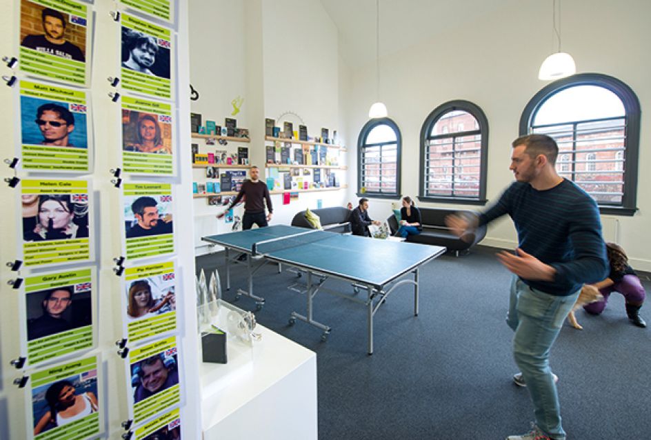 Steven Shaw, design director, said: “We’re lucky to have such a large open space with break-out areas and snug meeting booths, allowing us to hot-desk and move around depending on what project we’re working on that day.” And if the team needs a quick time out, they can play a spot of table tennis, miniature golf or darts.
